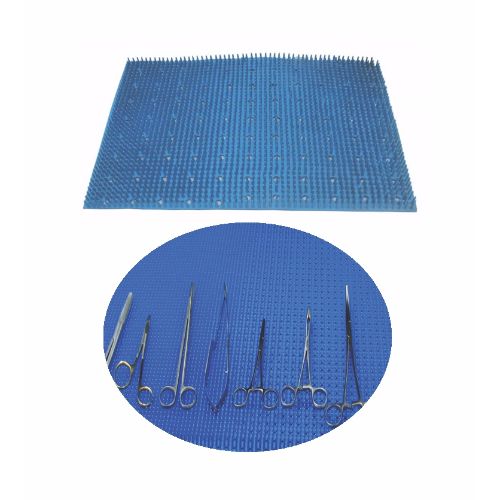 Silicone mat securely and gently holds instruments in place inside a sterilization tray. Can be used as