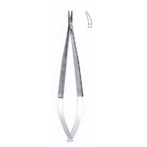 Castroviejo Micro Needle Holder 14 cm ,Curved, Smooth, Without Lock, Tungsten Carbide Jaws